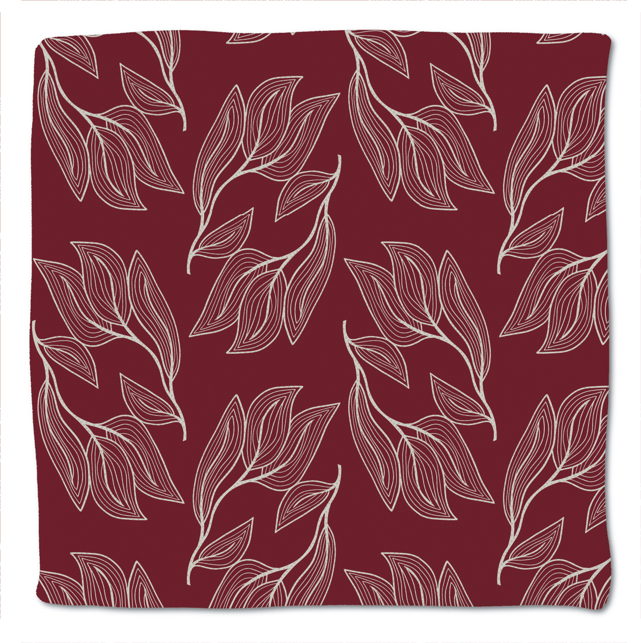 Muster 9 ist ein Blättermuster, hier mit Hintergrundfarbe bordeaux (Farbwerte CMYK 35/96/62/54) und Vordergrundfarbe hellgrau (Farbwerte CMYK 24/17/19/3).